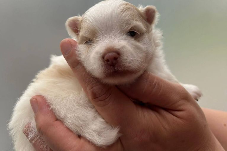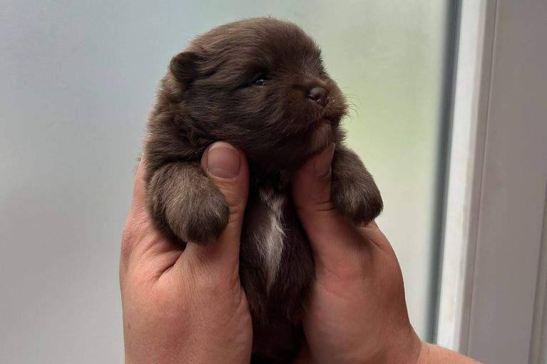Unser letztgeborener Rüde ist aufgeweckt und freut sich über jedes Neue! Als schwerster des Wurfes zeigt er auch seinen Geschwistern gerne den Weg. Auch er hat eine weiße Zeichnung auf der Brust.