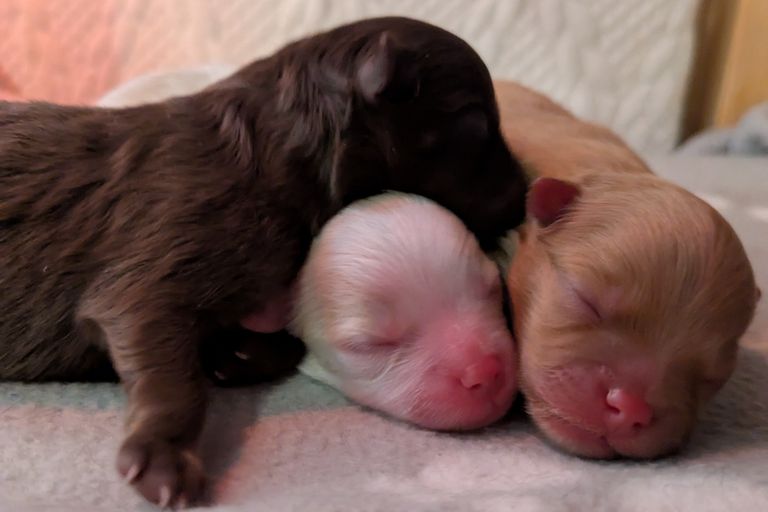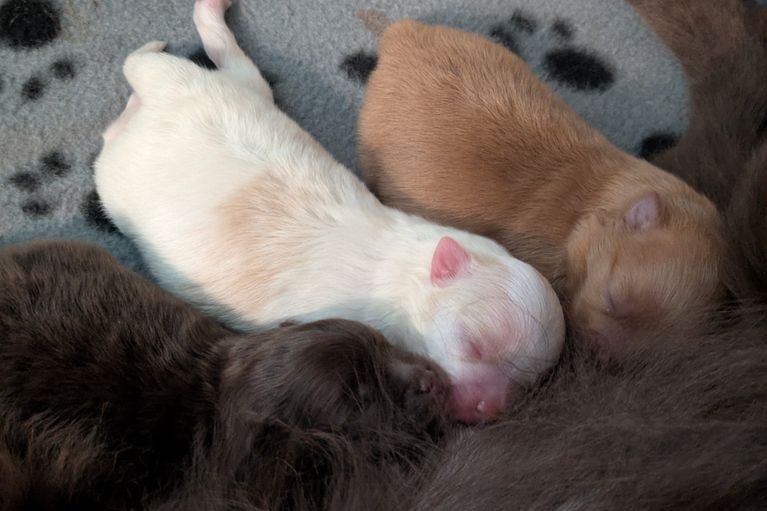 Nach einem unruhigen Tag erblickten 3 Welpen das Licht der Welt.