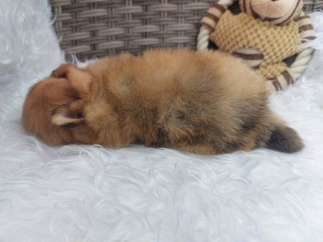 Als zweitgeborener der bisher ruhigste und leichteste Rüde des B-Wurfes ist durch seine weiße Zeichnung auf der Brust und an den hinteren Pfoten ein zauberhaftes Unikat.